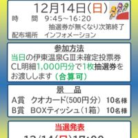 12月14日(日)伊東温泉GⅢ最終日 伊東温泉競輪の未確定投票券で クオカードやBOXティッシュが当たる抽選会 …