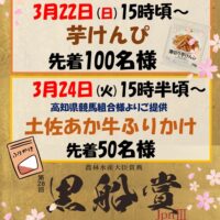 3月24日(火)『黒船賞JpnIII』開催🐎 22日(日) 芋けんぴ 24日(火) 高知県競馬 …