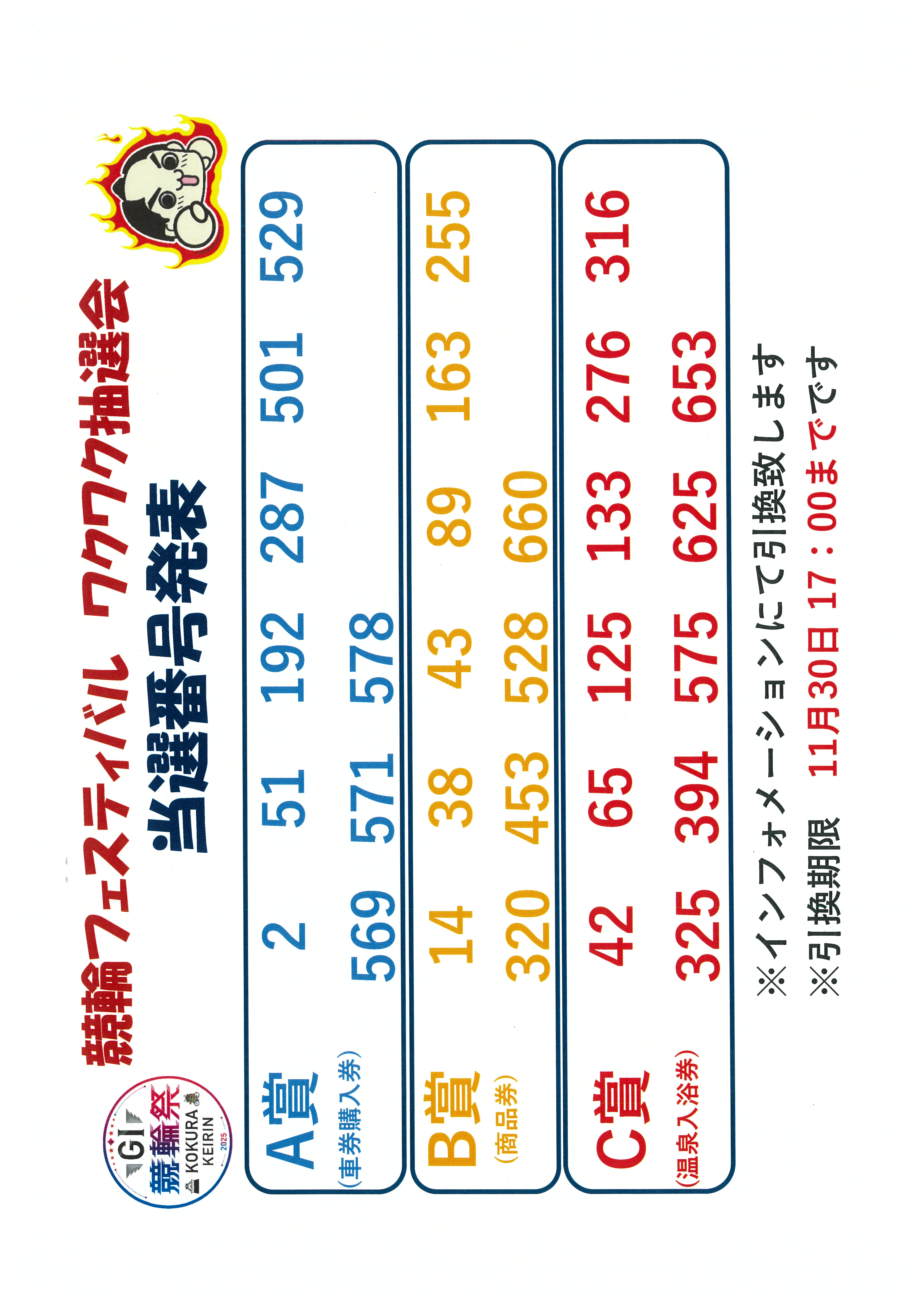 当選番号を発表します!