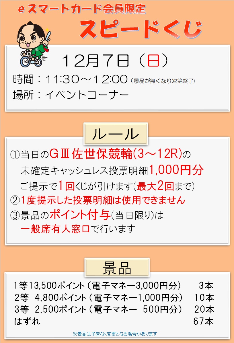当日のGⅢ佐世保競輪(3~12R)の未確定キャッシュレス投票明細1,000円分 ご提示で1回くじが引けます(最大2回まで)。