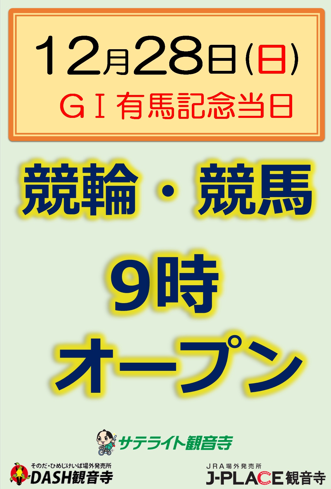12月28日(日)は、競輪・競馬ともに9時オープンとなります。