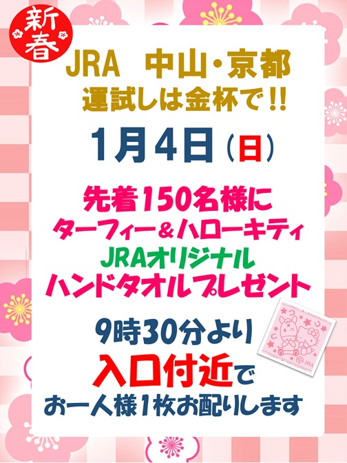 JRAのオリジナルハンドタオルを先着プレゼント致します。