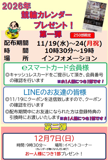 e スマートカード会員様LINEのお友達の皆様を対象に2026年KEIRINカレンダーをプレゼント致します!