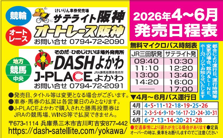 2026年4月~6月発売日程と無料バス時刻表