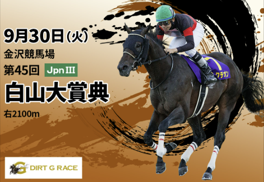 9月30日(火)金沢競馬場で行われる【第45回白山大賞典】をDASHよかわで発売いたします。17:05発走予定 レース番号は第10Rです。地方競馬の熱きレースにご期待ください。皆様のご来場お待ちしております。