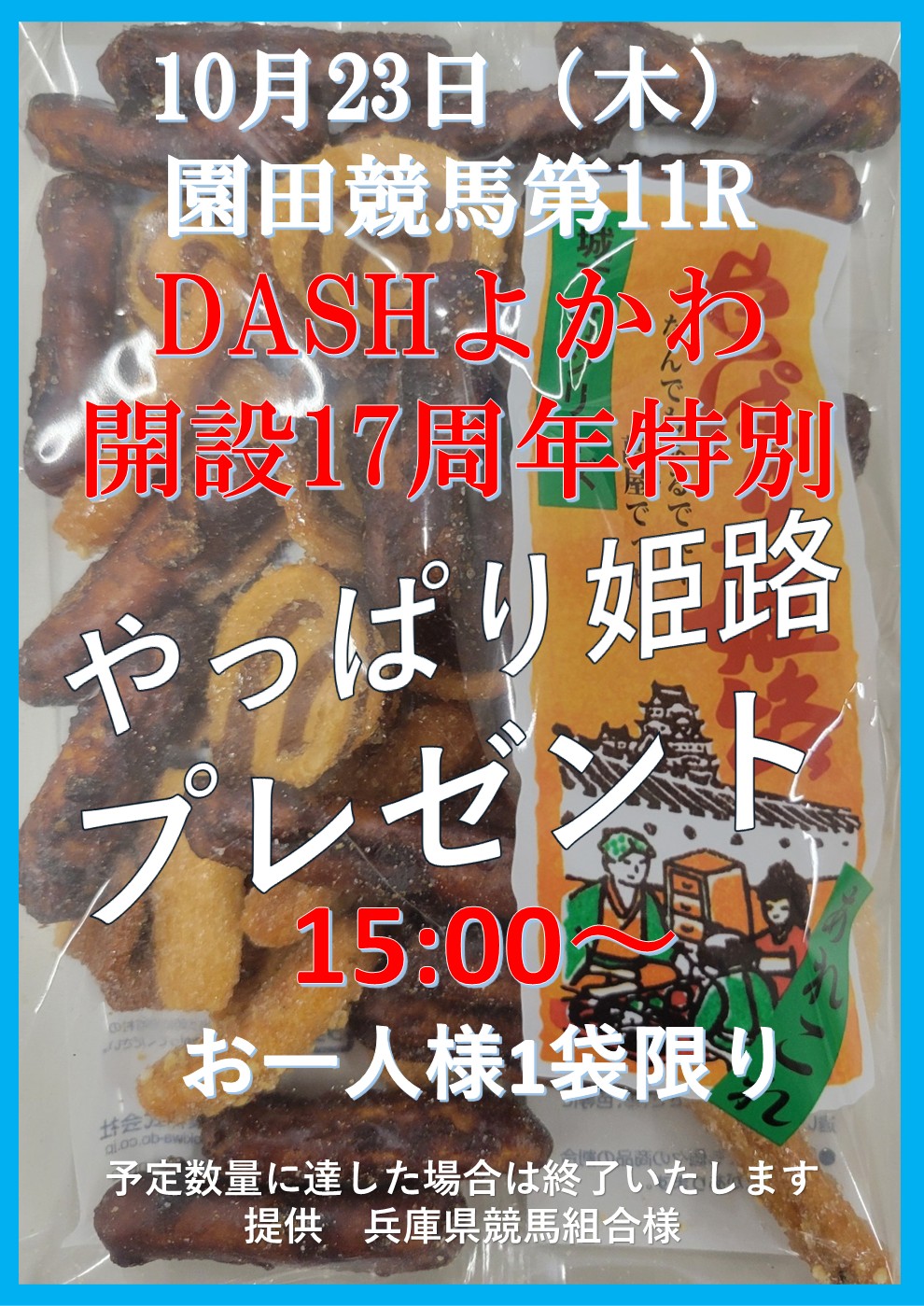 10月23日(木)24日(金)の2日間、15:00より来場者プレゼントとして大好評のかりんとう【やっぱり姫路】をプレゼントします。数に限りがございますのでご注意ください。