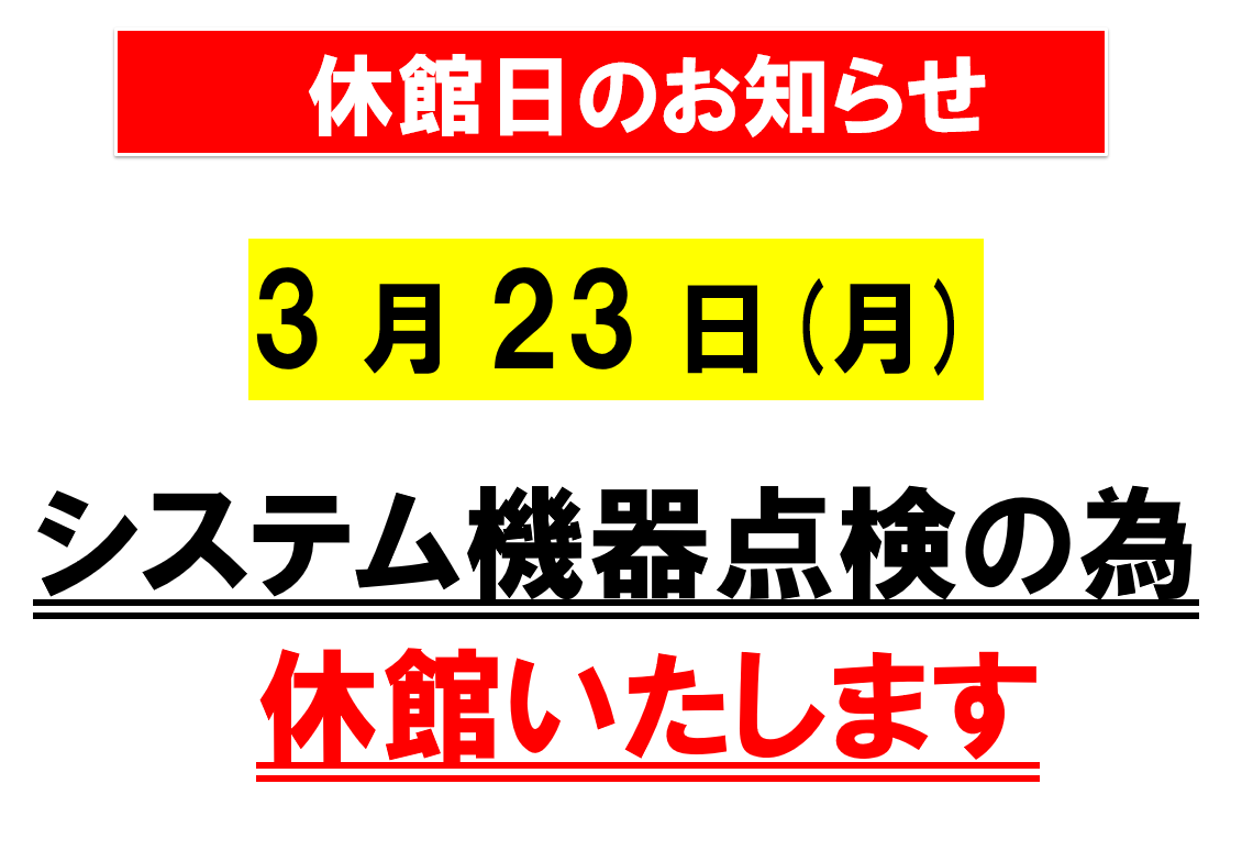 3/23(月)休館日のお知らせ
